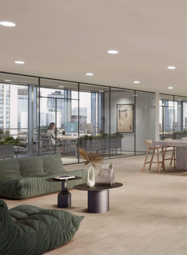 Es offeriert Unternehmen das Fundament einer Ikone, um das Arbeiten der Zukunft darauf neu zu gestalten. In Symbiose mit dem Rothschildpark, synchron zum Puls der Stadt.